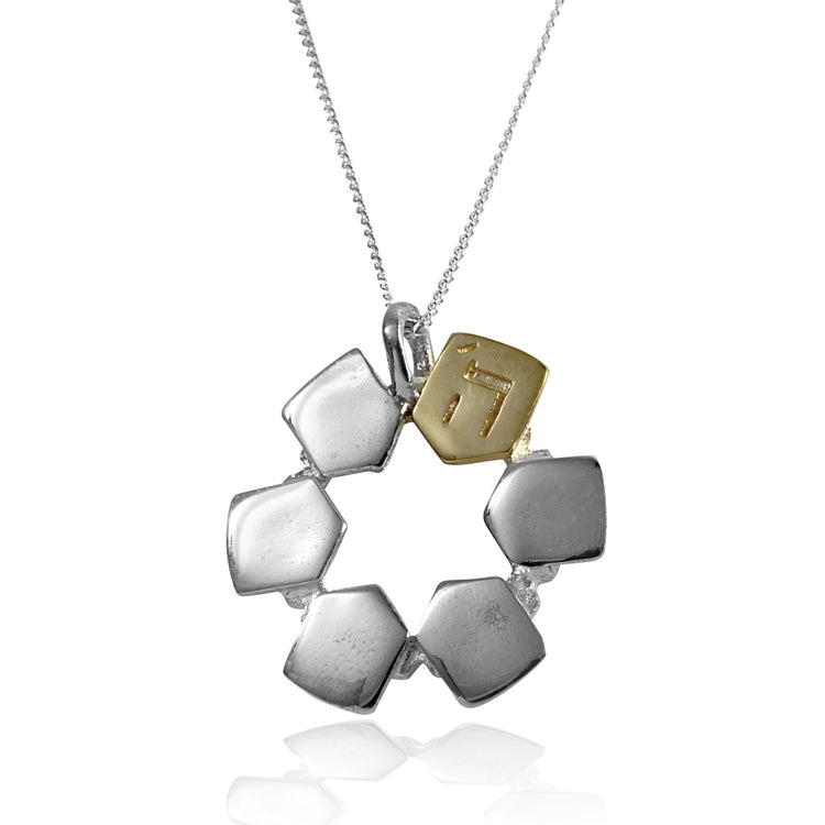 This gorgeous Star of David pendant is one of our most unique pieces. The Star of David is formed by six segments beautifully linked together. The Star of David in this design symbolically connects the material world of man with the spiritual one.