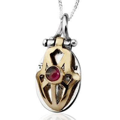 This Hamsa pendant is made of two parts, one is from shaped as gold Hamsa hand and the other from silver. At the heart of the Hamsa is an Amethyst gem. The Hamsa hand is an ancient amulet that is believed to fight the envious eye and negative energies.