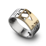 This stunning ring is handmade from silver and 9K gold. The heart of the ring beautifully features a Star of David, comprised of two parts.