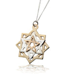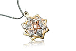 This stunning piece of jewelry is made of sterling silver and 9K gold. It is comprised of three protection shields according to the 3 letters that spell out Eve's name in Hebrew (Hava).