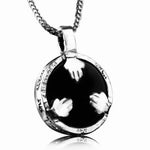 This unique Star of David necklace is made from silver with an Onyx gem at its heart. The reverse side of the pendant features a triple Hamsa hand motif. The Star of David and the Hamsa hand are both considered protection motifs in Jewish tradition and are believed to enhance positive energies.