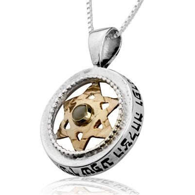 This gorgeous pendant, made from Sterling Silver , is decorated with 9 K gold Star of David with a chrysoberyl gem.