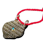Set with a Turquoise stone, this piece is a replica of an 18 th century Persian amulet. Made of 9 K gold, the pendant is inscribed in Hebrew with the Kabbalist prayer Ana BeKoach.