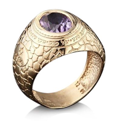 Set with an Amethyst Stonethis beautifully decorated Kabbalah ring is made of 9K gold. The ring is engraved in Hebrew with Ana Bekoach. The prayer Ana BeKoach was written in the first century by the great Kabbalist, Rabbi Nehumia Ben Hakannah. Rabbi Nehumia assumed that the day would come when people lose some of their spirituality. In that state, he concluded, people would not be able to grasp Kabbalist meditation codes. Therefore, Rabbi Nehumia had written this prayer using the first letter of each word according to the order of the 42 letter name.