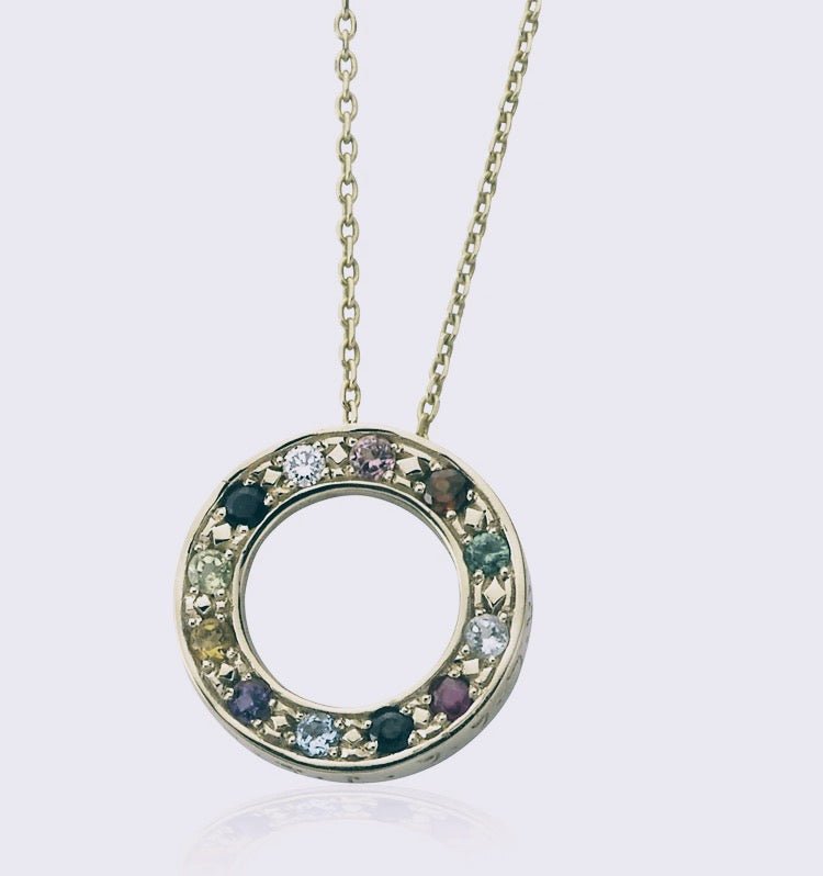 This wheel pendant will make a beautiful gift for a Cohen or anyone who is interested or inspired by spirituality and art. Made of sterling silver the pendant is set with precious and semi precious stones known as the Hoshen stones. The Hoshen stgnes were first worn by the High Priests of the Israelites, the Kohens, in the Tabernacle in the Sinai desert. This handcrafted pendant is designed according the exact position of the stones as it was set in the High Priest's breastplate, as specified in Bible, book of Exodus, Chapter 28