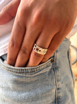 This stunning ring is handmade from silver. The heart of the ring beautifully features a Star of David, comprised of two parts.