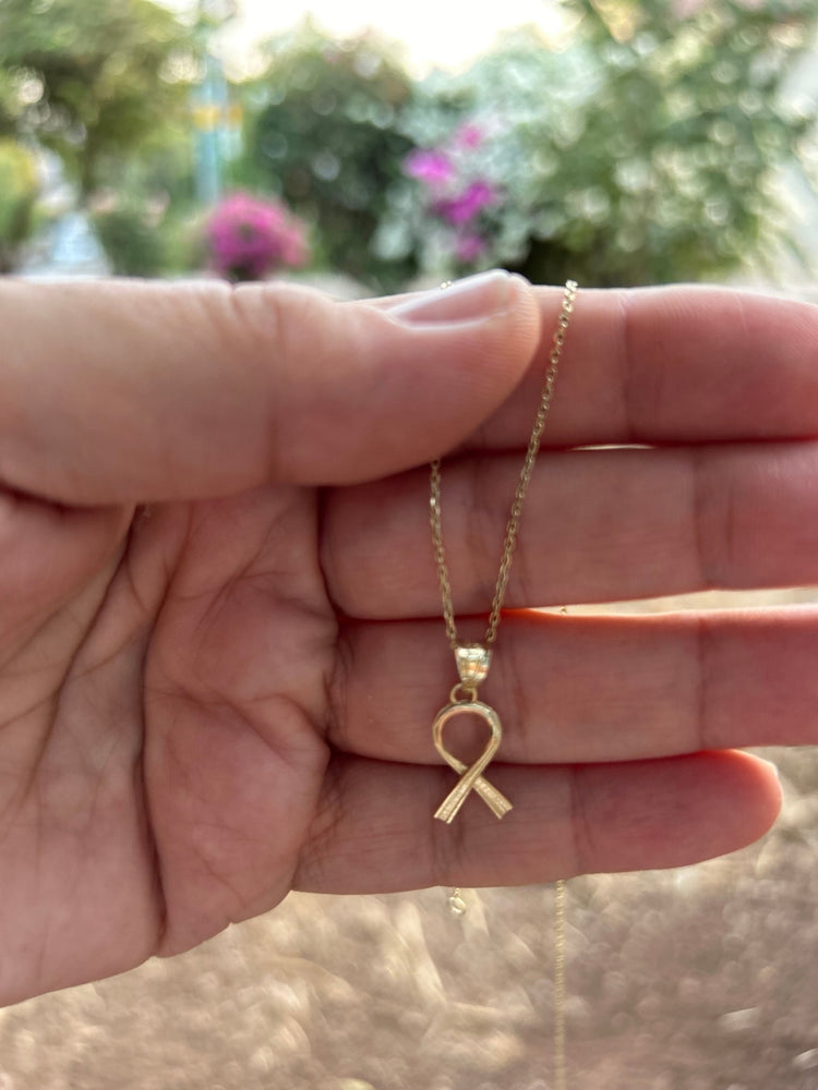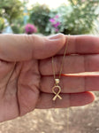 This gold freedom necklace is the Israeli hostages sign - Bring Them Home.