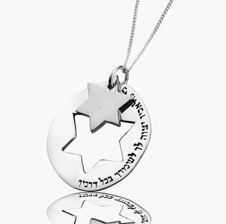 The Star of David pendant features a Hebrew verse from the book of Psalms: "For He will give His angels charge over thee, to keep thee in all thy ways " ( 91: 11). A unique Jewish charm for keepsake